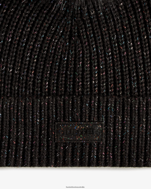Hunter Black Multi NF426483 Men Glitter Lurex Pompom Beanie