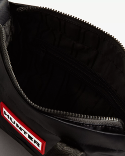 With a recycled polyester lining, a water-resistant exterior and a reinforced base, our black Nylon Mini Top Clip Tote will protect your possessions, whatever the weather. The ideal size for every day, it has a detachable adjustable strap so that it can be carried several different ways.