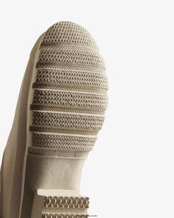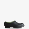A grey slip-on shoe handcrafted from waterproof vegan rubber, designed for gardening. Updated with the iconic red box logo and recycled insole, the clog has a flexible natural rubber form and Hunter’s signature tread providing grip. Lined in neoprene for breathability and comfort, it protects from the elements as well as supporting the foot.