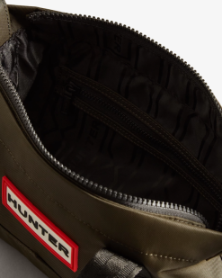With a recycled polyester lining, a water-resistant exterior and a reinforced base, our olive green Nylon Mini Top Clip Tote will protect your possessions, whatever the weather. The ideal size for every day, it has a detachable adjustable strap so that it can be carried several different ways.