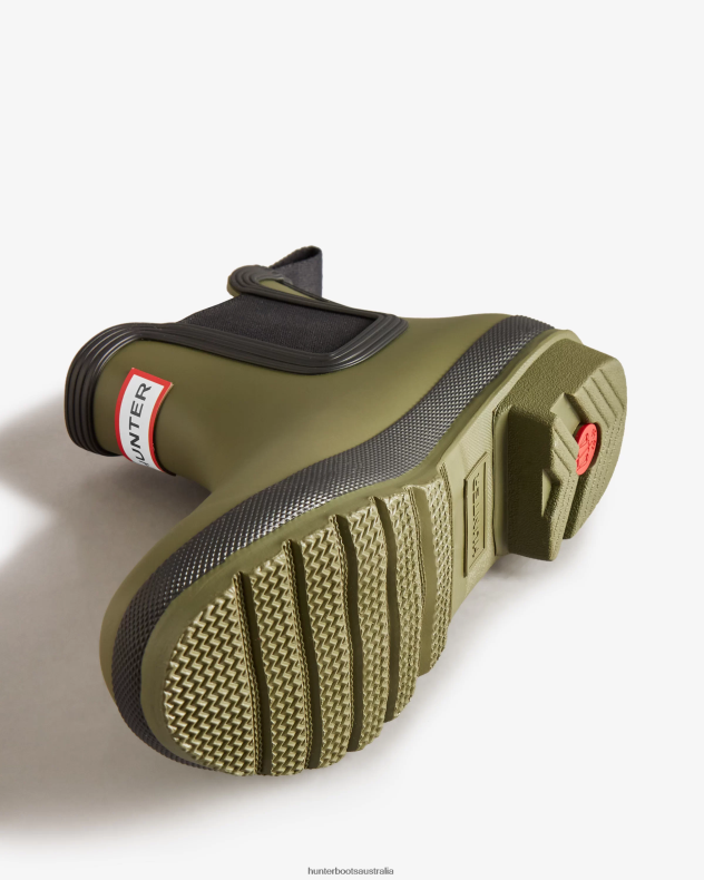 The new and improved Hunter Original Chelsea Boot has an even more optimum fit to maximise all-day comfort and has been updated with a 100% recycled polyester lining and insole. Ready for rain, each boot is handcrafted from natural rubber and vulcanised for superior protection. Retaining the iconic features of a traditional Chelsea, it features elasticated-gussets and has a nylon pull-tab to make stepping into the boot easy. Finished in a olive green and black shade, these waterproof Chelsea’s are a wet weather wardrobe essential.