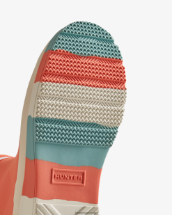 Hunter Persimmon Pink/White Willow/Birdseye Blue NF426183 Women PLAY Short Striped Sole Rain Boots