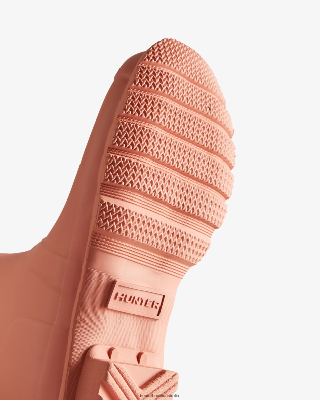 Perfect for wet weather conditions, this women’s Rain Boot has been at the heart of the Hunter Original brand since its introduction in 1956. Formed of natural rubber, each pair is made from 28 hand-cut parts and assembled over three days on an aluminium last bespoke to Hunter, before being vulcanised for superior protection. Featuring the Hunter Original tread pattern, an updated 100% recycled polyester lining and insole, this seasonal pink waterproof boot is a rainy-day necessity.
