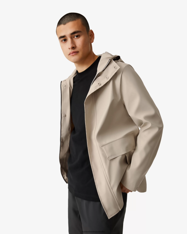 Designed for daily use in transitional seasons, the Rain Jacket is the ultimate protection against harsh and unpredictable weather. This fully waterproof beige jacket features a welded seam construction and storm flap closure for superior protection. Crafted with underarm eyelets, the full mesh body lining offers added breathability.