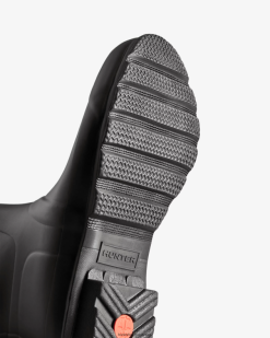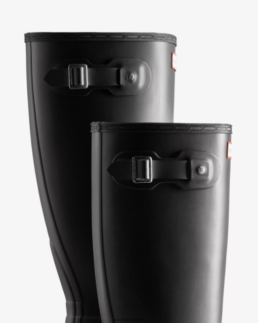 First debuted in 1956, our Tall Rain Boots have been at the heart of the brand ever since. Now available with an updated and improved wide fit, these women’s rain boots are handcrafted over three days from natural, vegan rubber, which is vulcanised for superior waterproof protection. With our signature Hunter tread underfoot, these black boots will protect you in wet and slippery conditions.