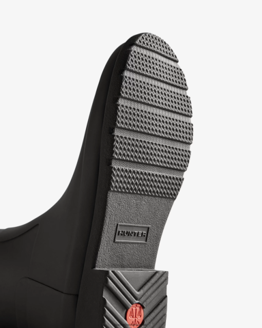 Crafted from FSC-certified natural rubber from forests independently audited to Forest Stewardship Council standards. The Refined Tall Rain boot now features the iconic Hunter tri-colour logo on the backstrap. This black Refined Boot has a tailored shape and is constructed from fewer rubber layers for a more lightweight feel. Handcrafted and fully waterproof, this women’s rain boot blends practicality and style for a classic wet-weather look.