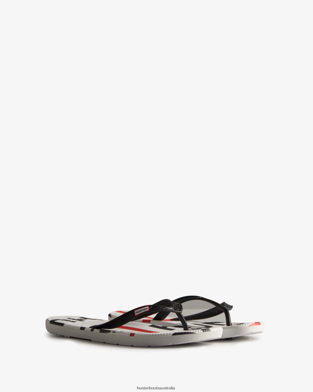 Hunter Black NF426283 Women Exploded Logo Flip Flops