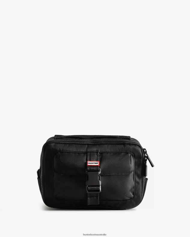 This multifunctional Crossbody is designed to be worn three ways – held by the top handle, across the body or around the waist. The black bag has a wide zip opening and gussets for easy access to the main compartment. It is made from a highly water-resistant, 100% recycled nylon with a recycled polyester water-resistant jacquard lining.