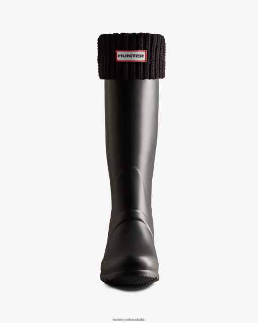 Re-designed with left and right foot shaping, these black boot socks offer the most enhanced fit and comfort and will fit easily inside the Original Tall Rain Boot. They feature the Hunter Original logo, a cosy knitted half-cardigan fold down cuff and a fleece leg made from 100% post-consumer recycled polyester.