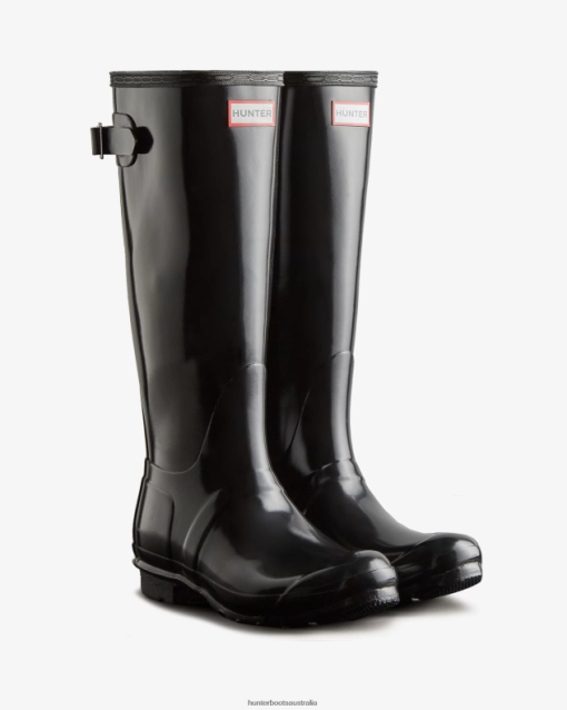 Hunter Black NF42662 Women Tall Back Adjustable Gloss Rain Boots