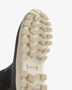 The City Explorer is the ultimate boot for city streets. Built on a new chunky rubber outsole with an exaggerated heel and traction-enhancing rubber, it features a neoprene upper and recycled lining made from post-consumer waste. Bold tonal Hunter logos on the webbing finish the look on this black and white contrast boot.