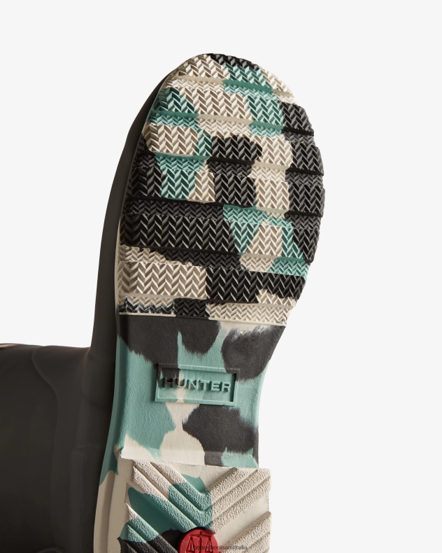 Hunter Black/White Willow/Birseye Blue NF426131 Women Colour Splash Sole Short Rain Boots