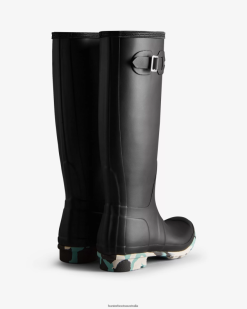 The iconic Hunter Original Tall Boot has been updated this season with a unique colour splash outsole. Crafted from natural rubber with a 100% recycled polyester lining and insole, this tall black boot is handcrafted and assembled over three days on an aluminium last bespoke to Hunter.
