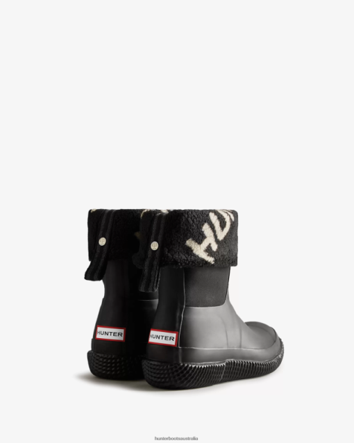 Hunter Black/White Willow NF426331 Women Insulated Roll Top Logo Vegan Shearling Boots