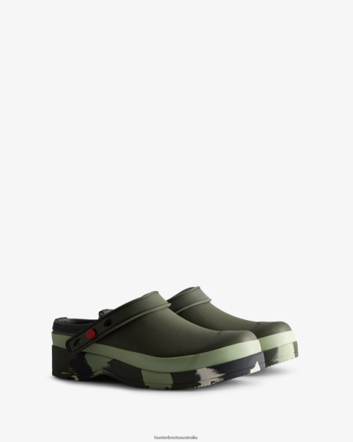 Lightweight and easy to slip on and off, the signature Play Clog has been updated with our paint-splashed multicoloured sole. This green Play Clog also features a detachable rubber heel strap that can be adjusted for the perfect fit around the ankle or flipped onto the front. Fabric bindings have been added to the opening of the shoe for extra comfort, and the sole features our signature Hunter tread and our scales brand mark.