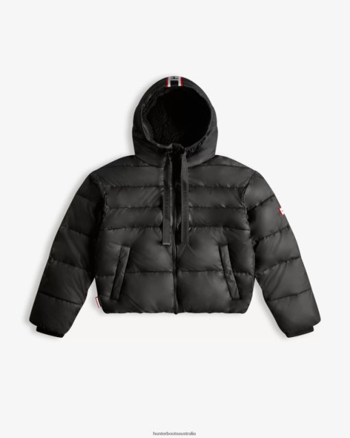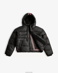 Hunter Logo Black NF426366 Women Intrepid Insulated Webbing Short Puffer Jacket