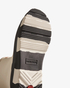 This season, Hunter’s streamlined PLAY Short Boot has been been updated with a unique striped sole. This white boot is crafted from certified vegan, natural rubber with a flat platform sole for maximum comfort. It is 100% waterproof and finished with a pull tab for easy foot entry.
